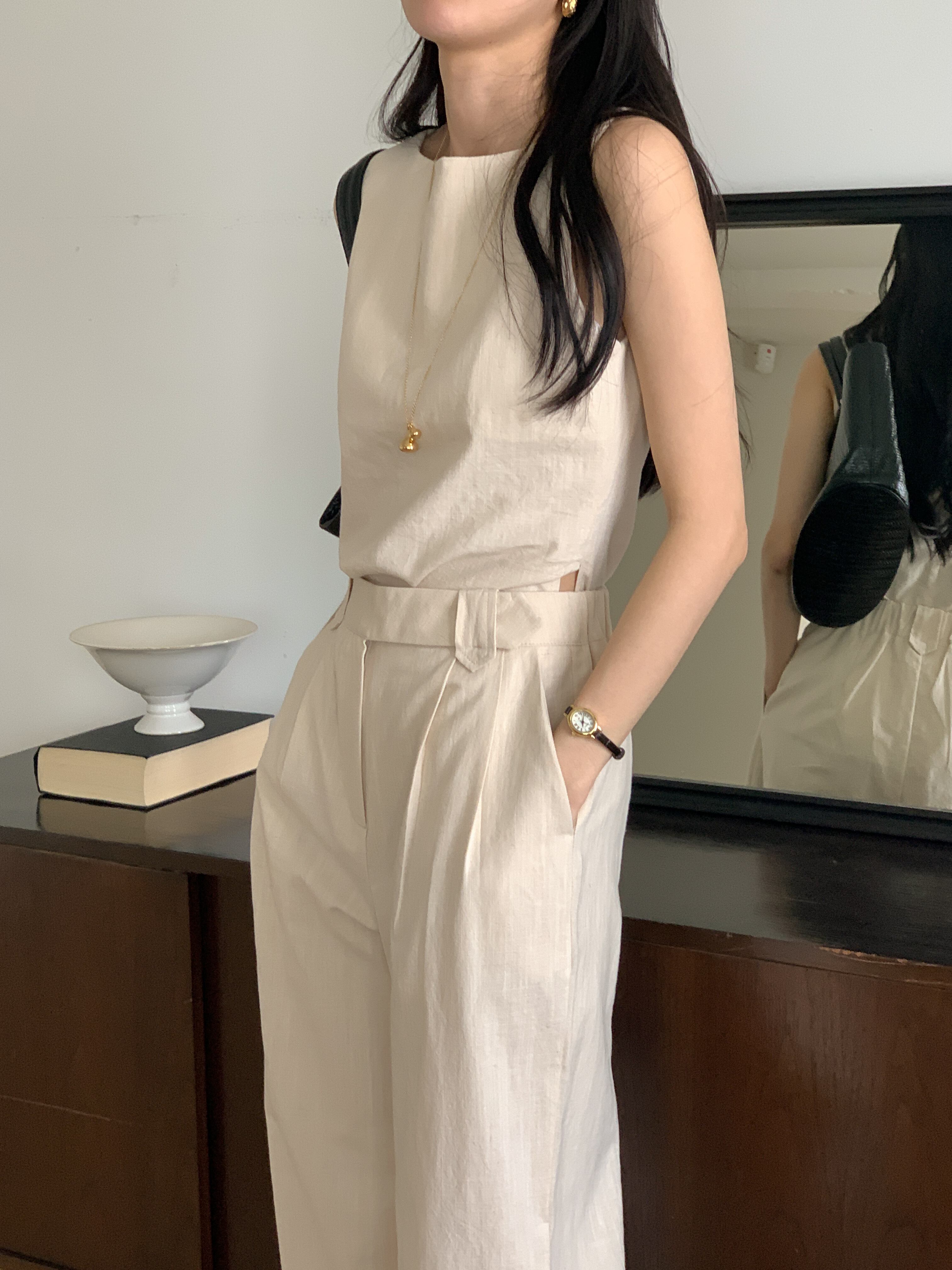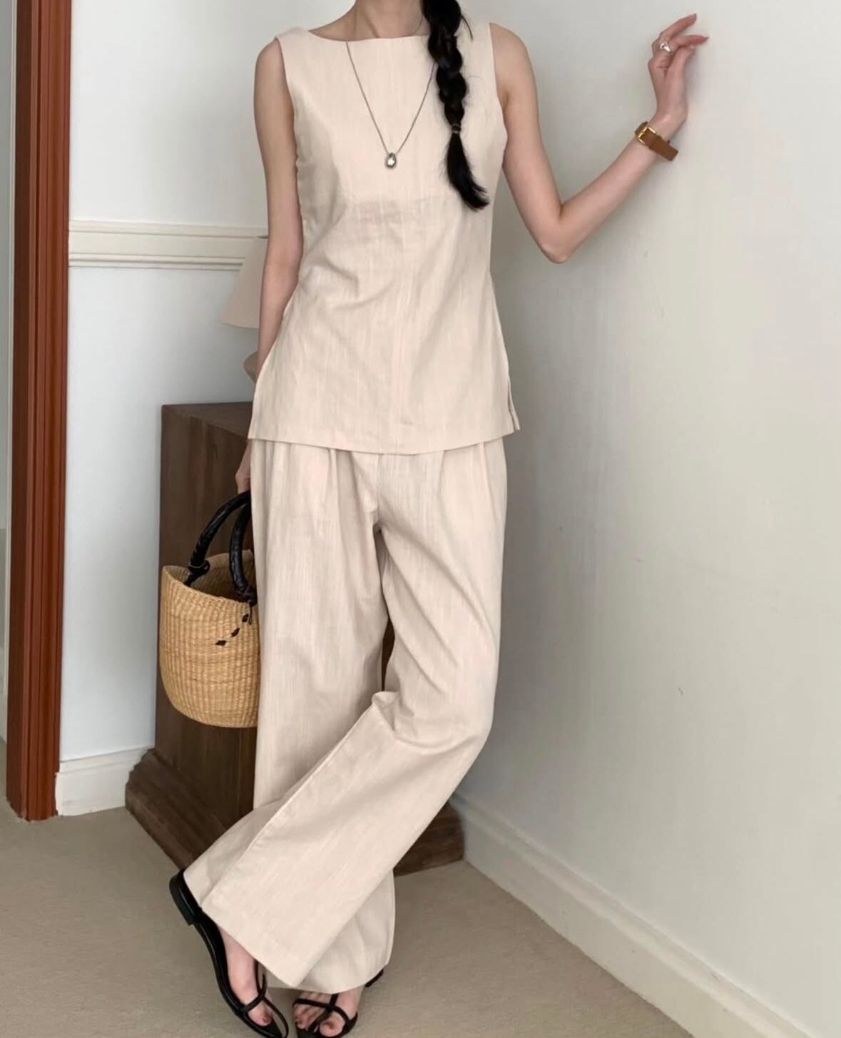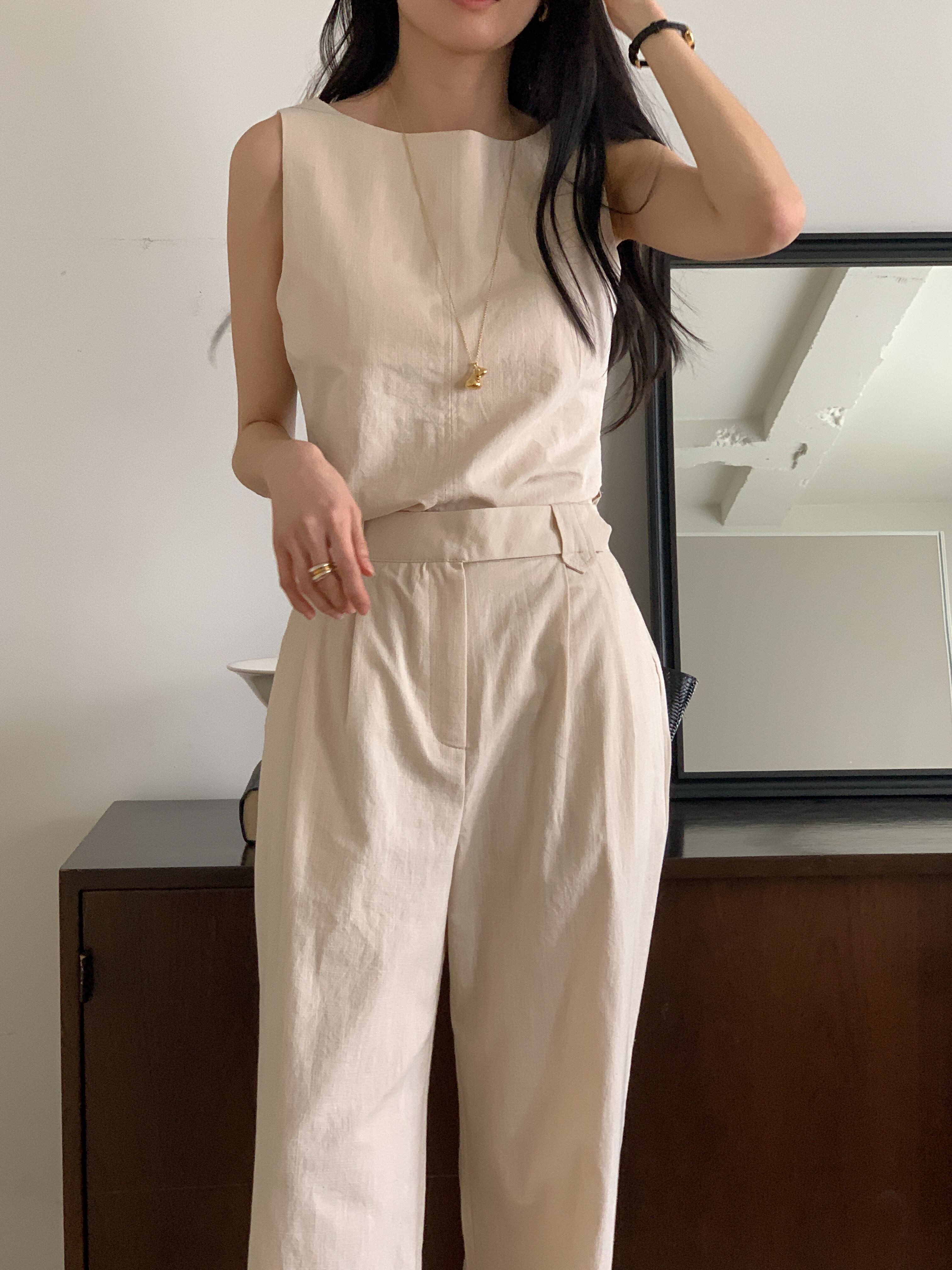 Side-slit Linen Set-Up 2color