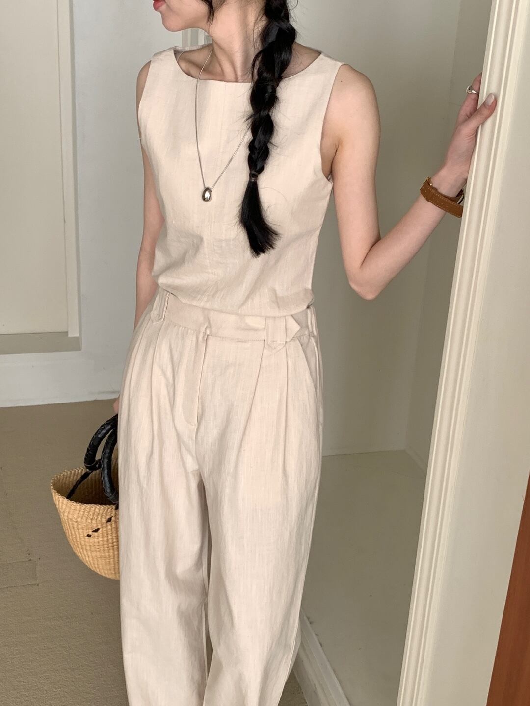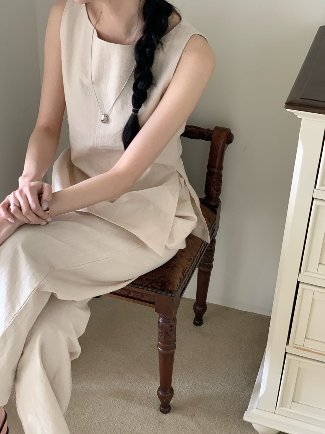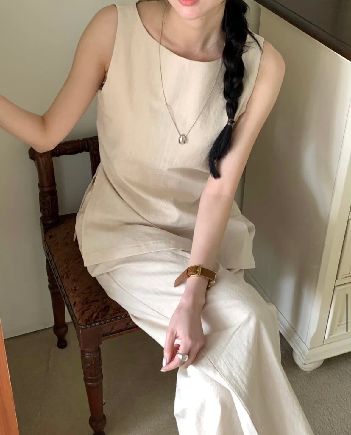 Side-slit Linen Set-Up 2color