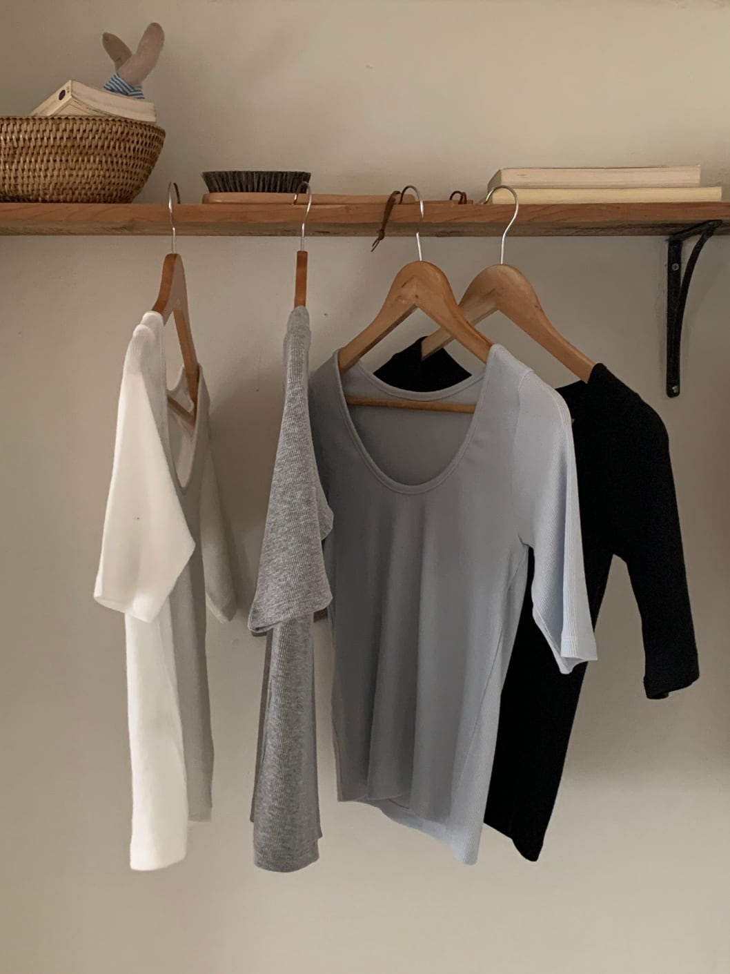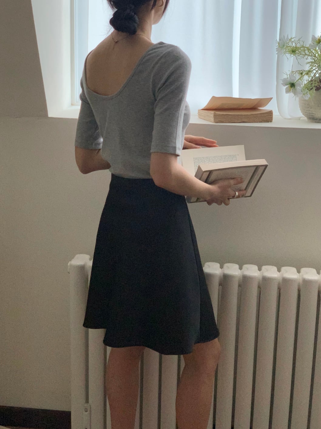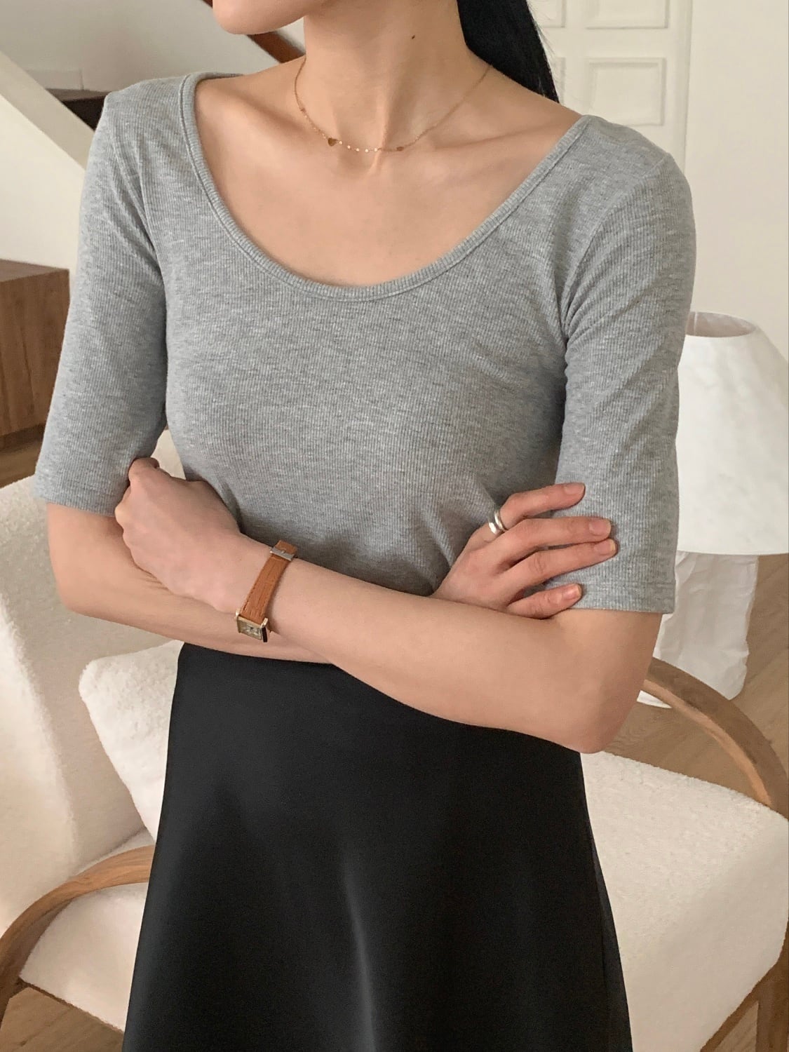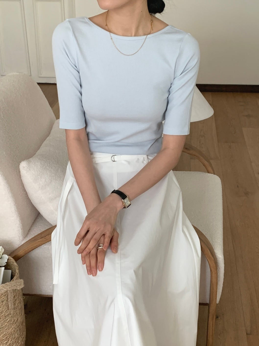 着心地の良いリブ素材で、前後2wayで着用できるトップスは、