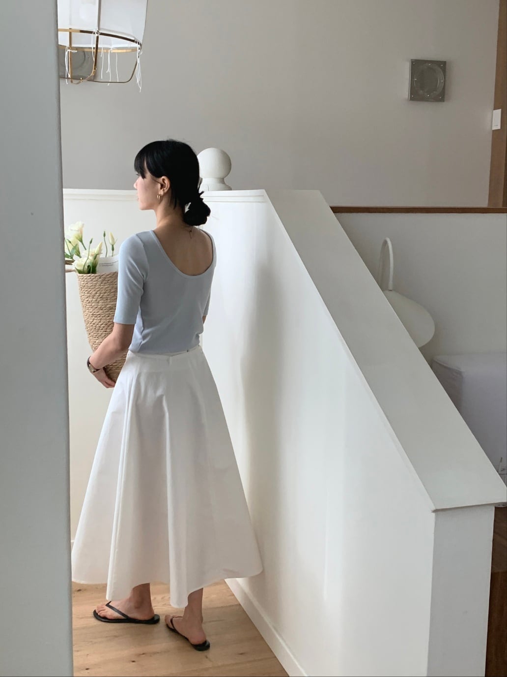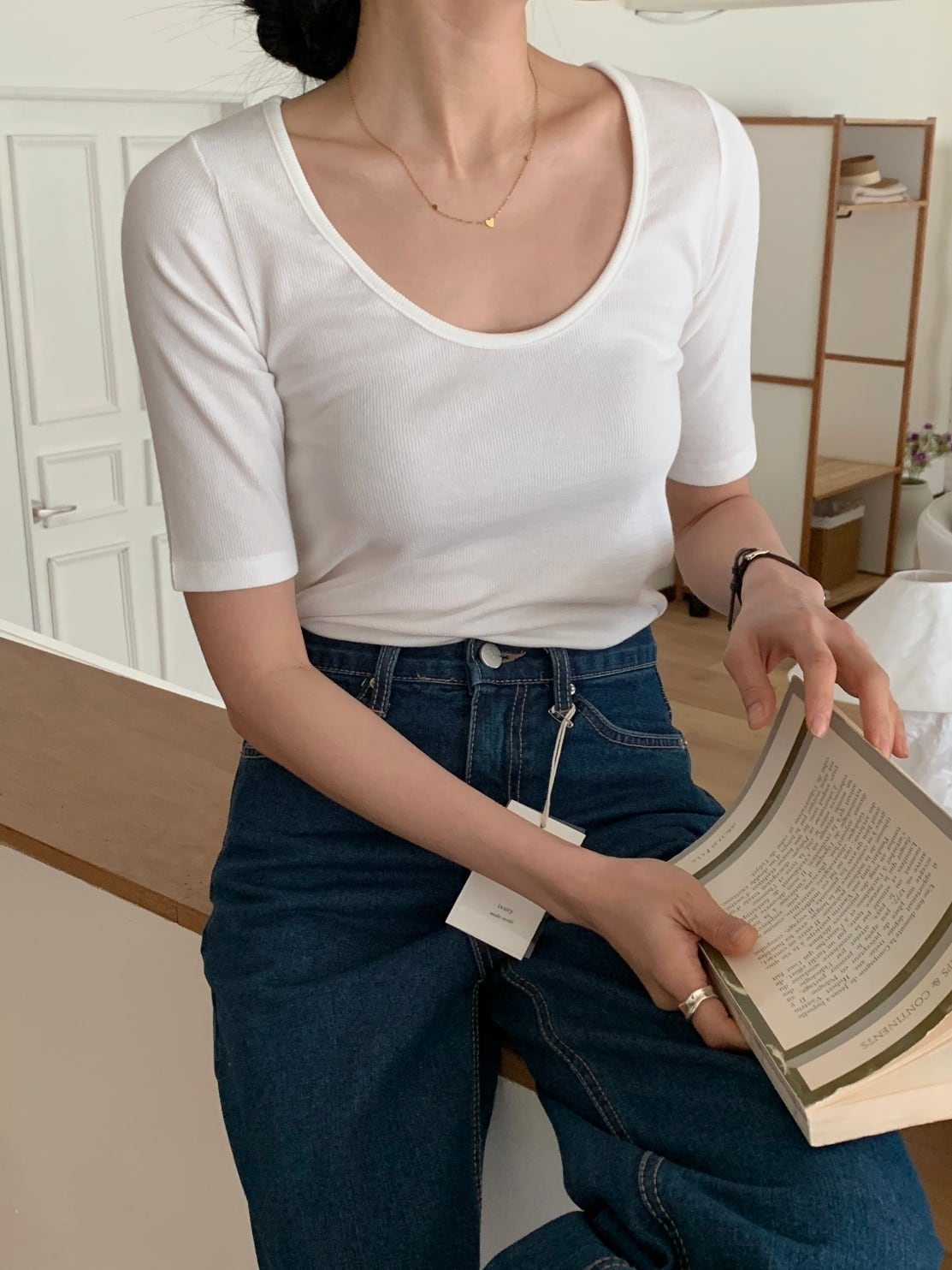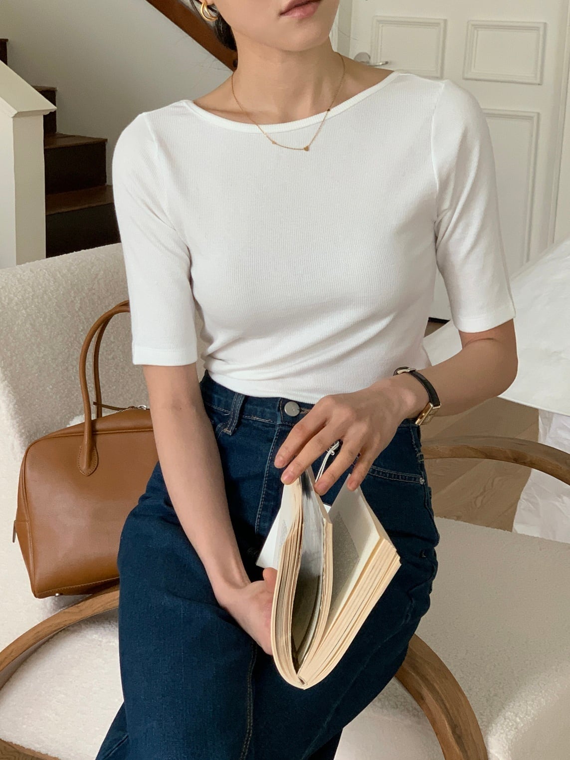 着心地の良いリブ素材で、前後2wayで着用できるトップスは、
