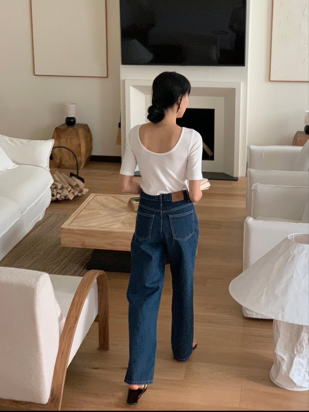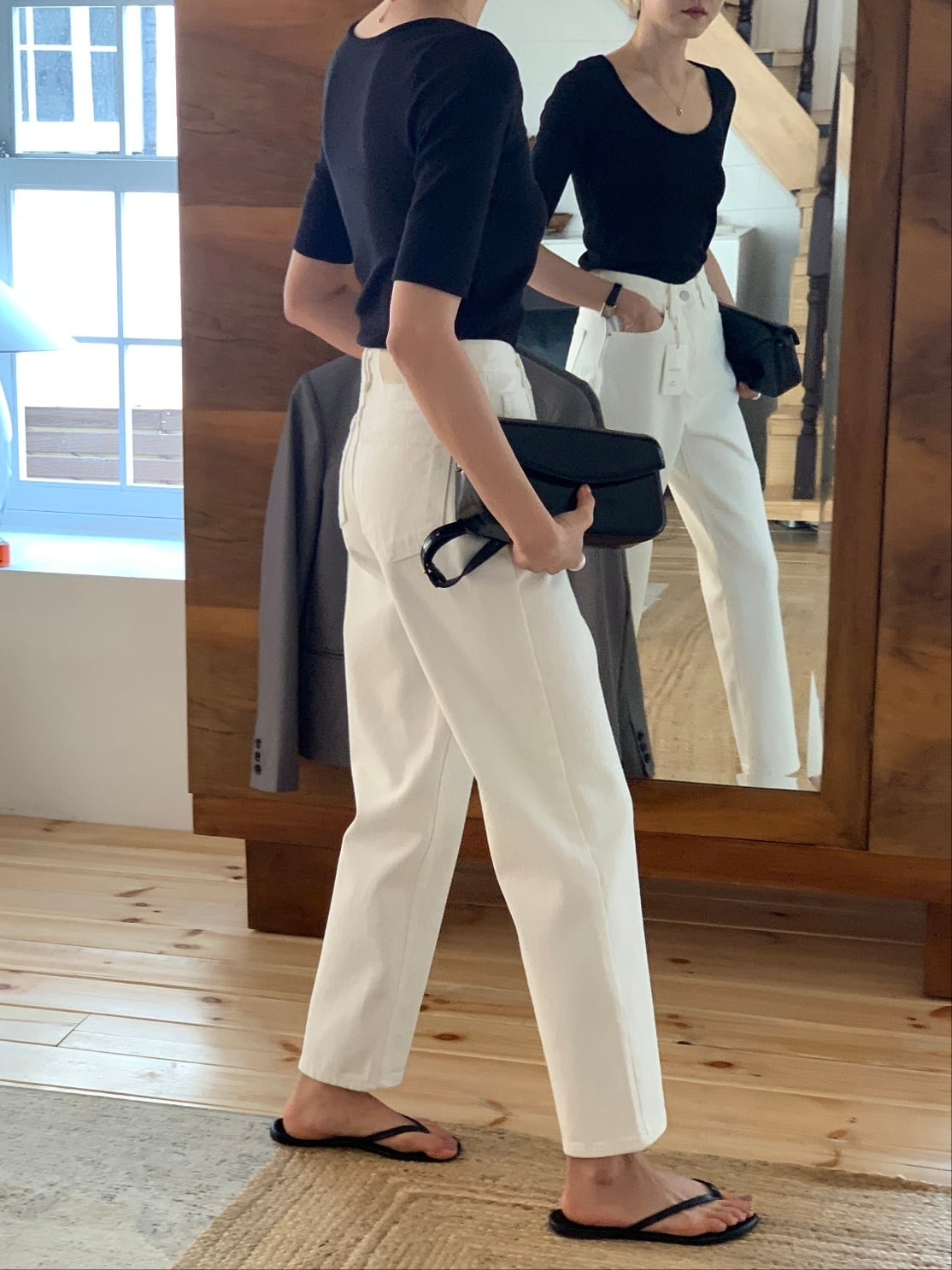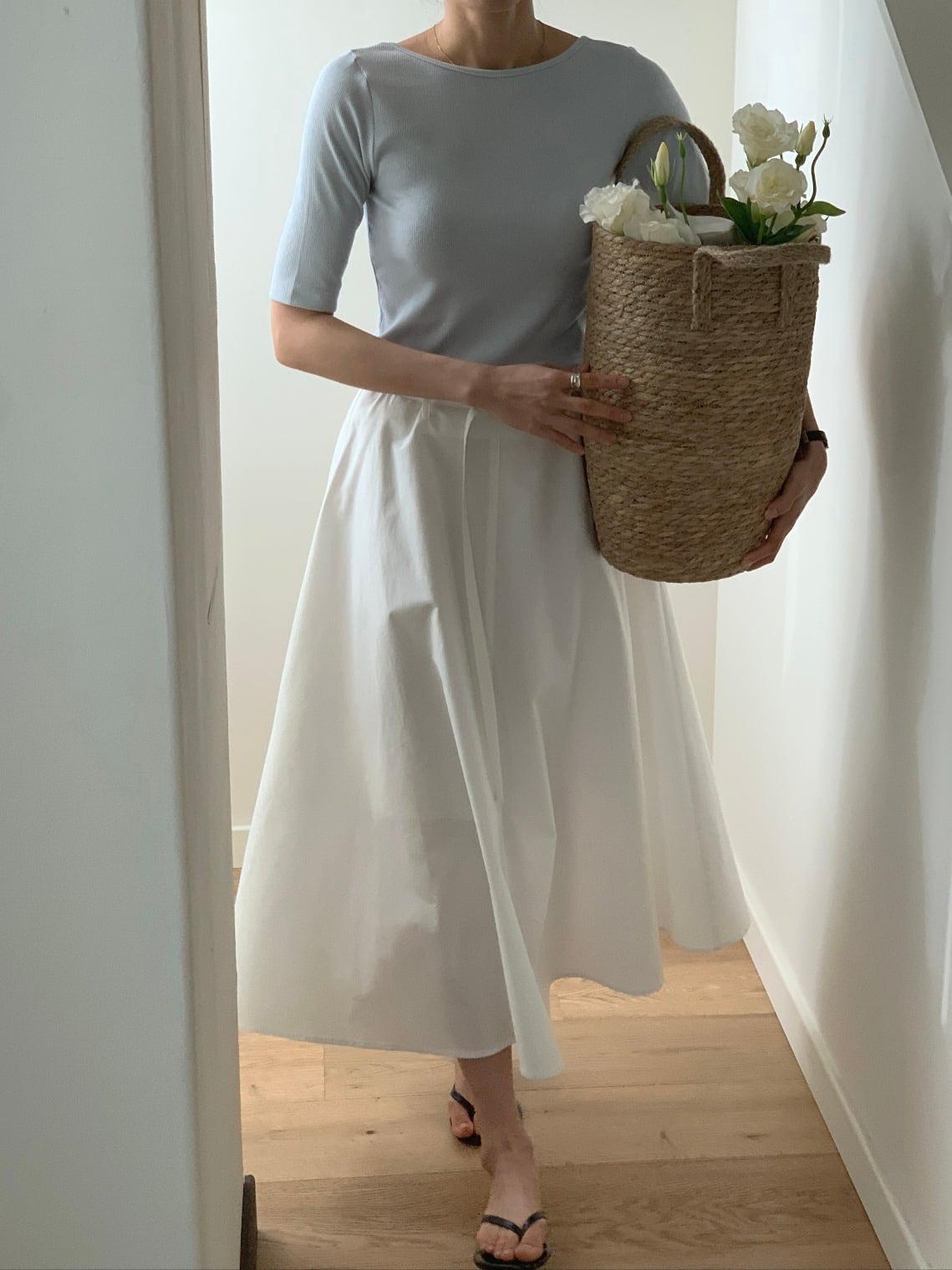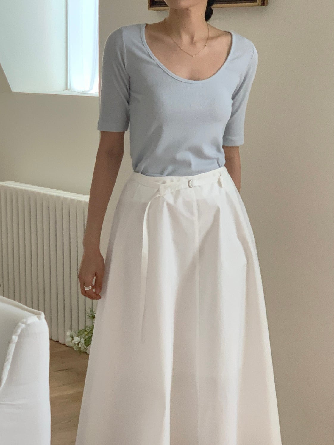 着心地の良いリブ素材で、前後2wayで着用できるトップスは、