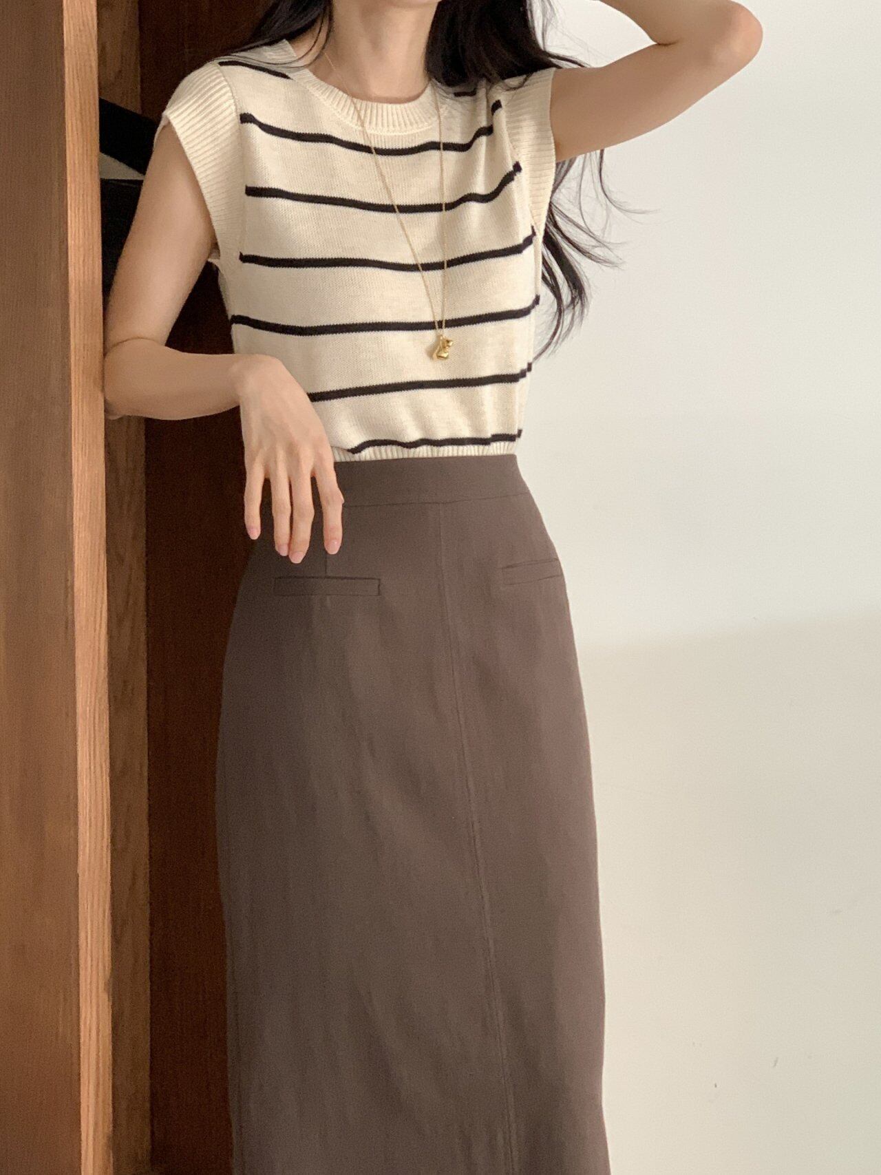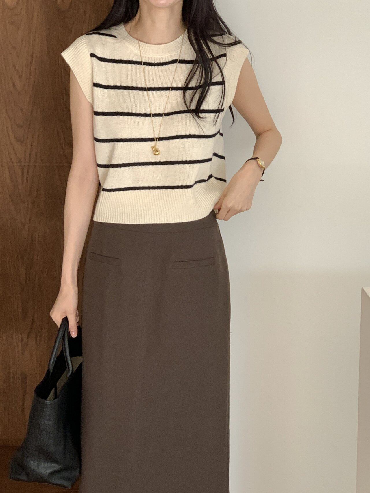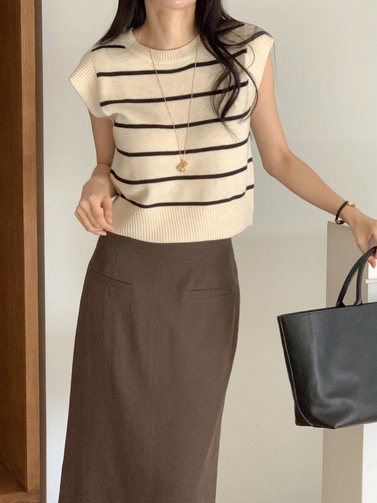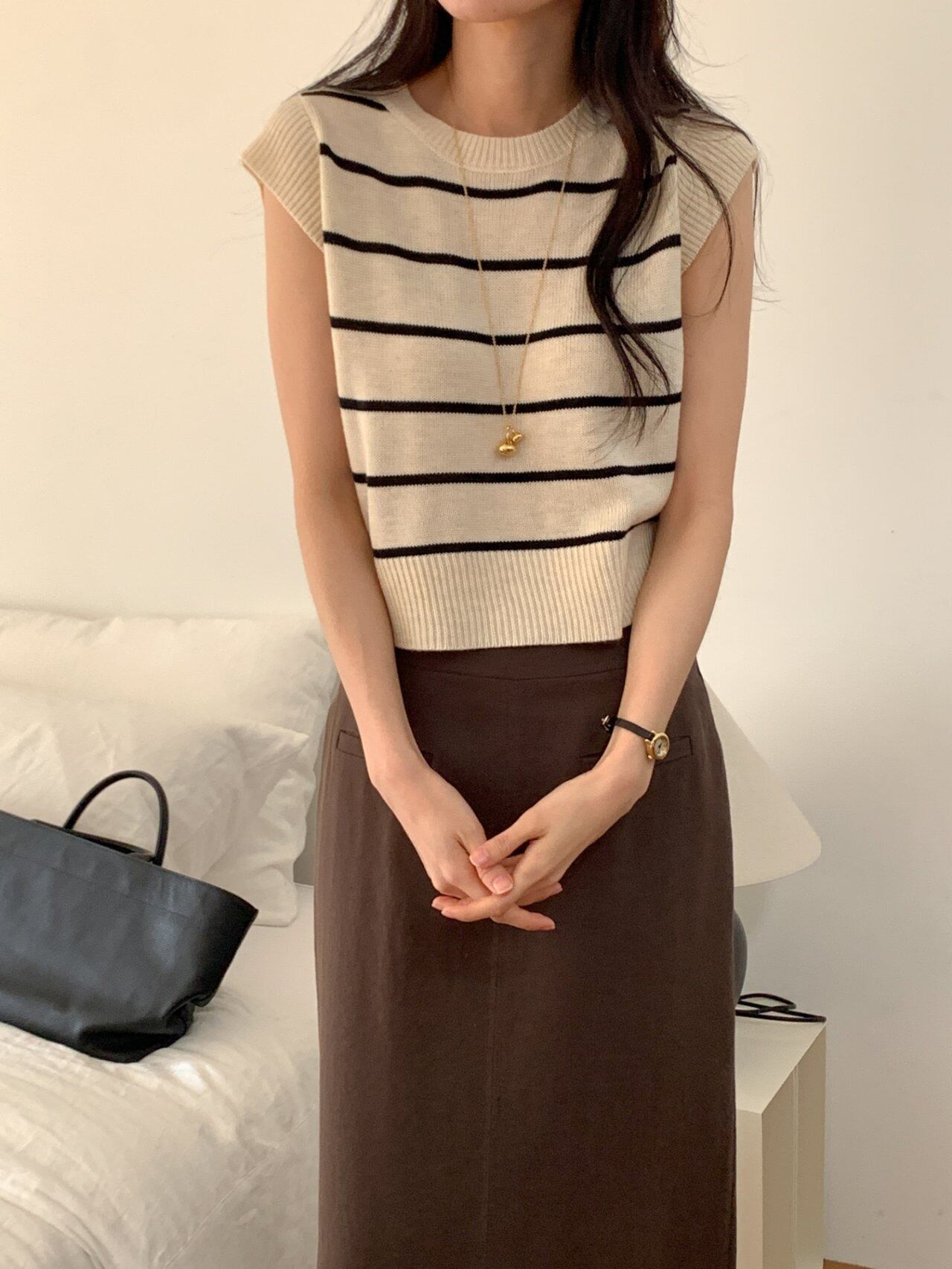 柔らかなコットン素材で作られたサマーニットは、シンプルながらもオシャレなアクセントを加えてくれます。伸縮性に優れ、少しゆとりのあるシルエットと長すぎない丈が夏のコーデにぴったりです。