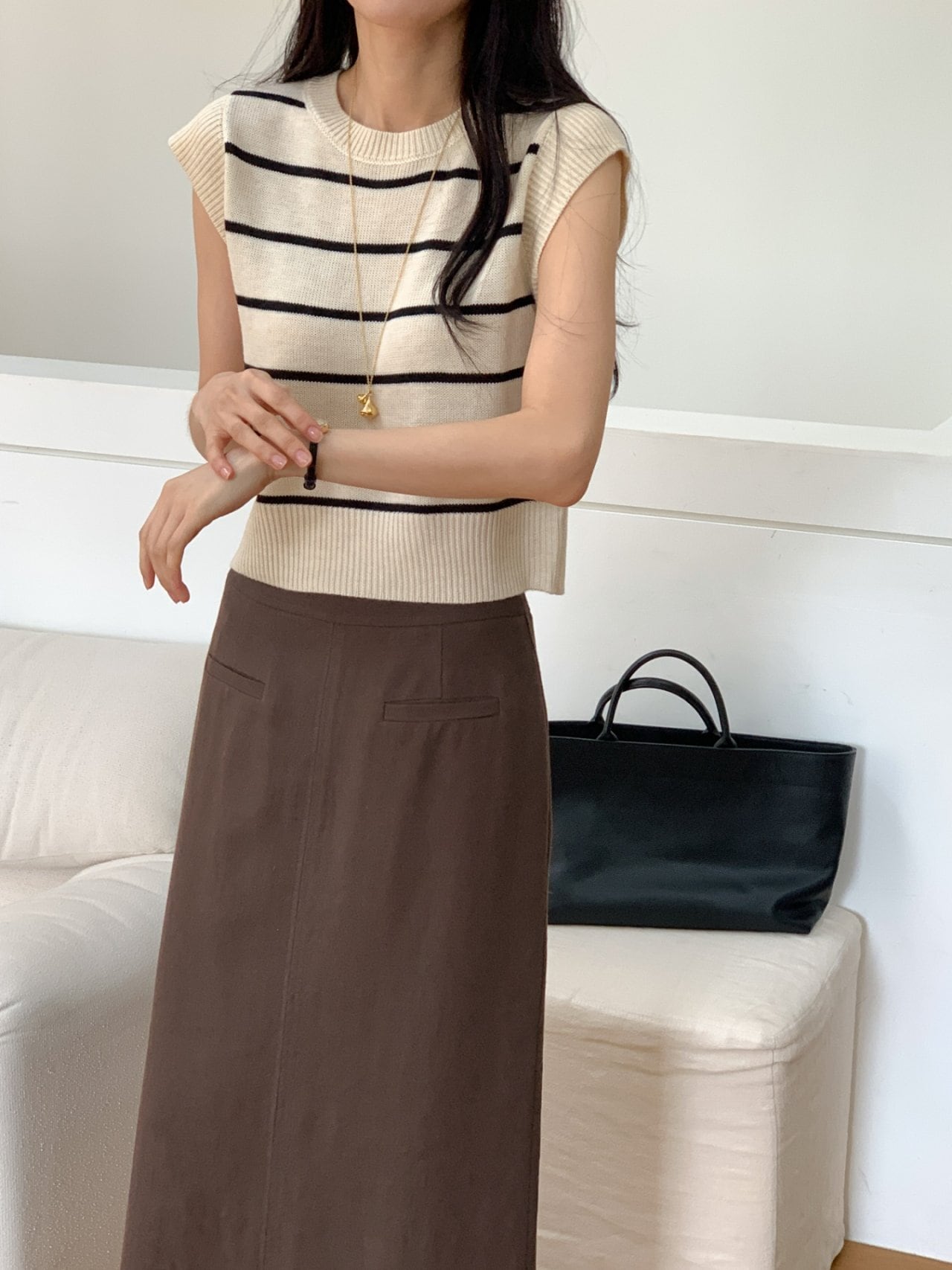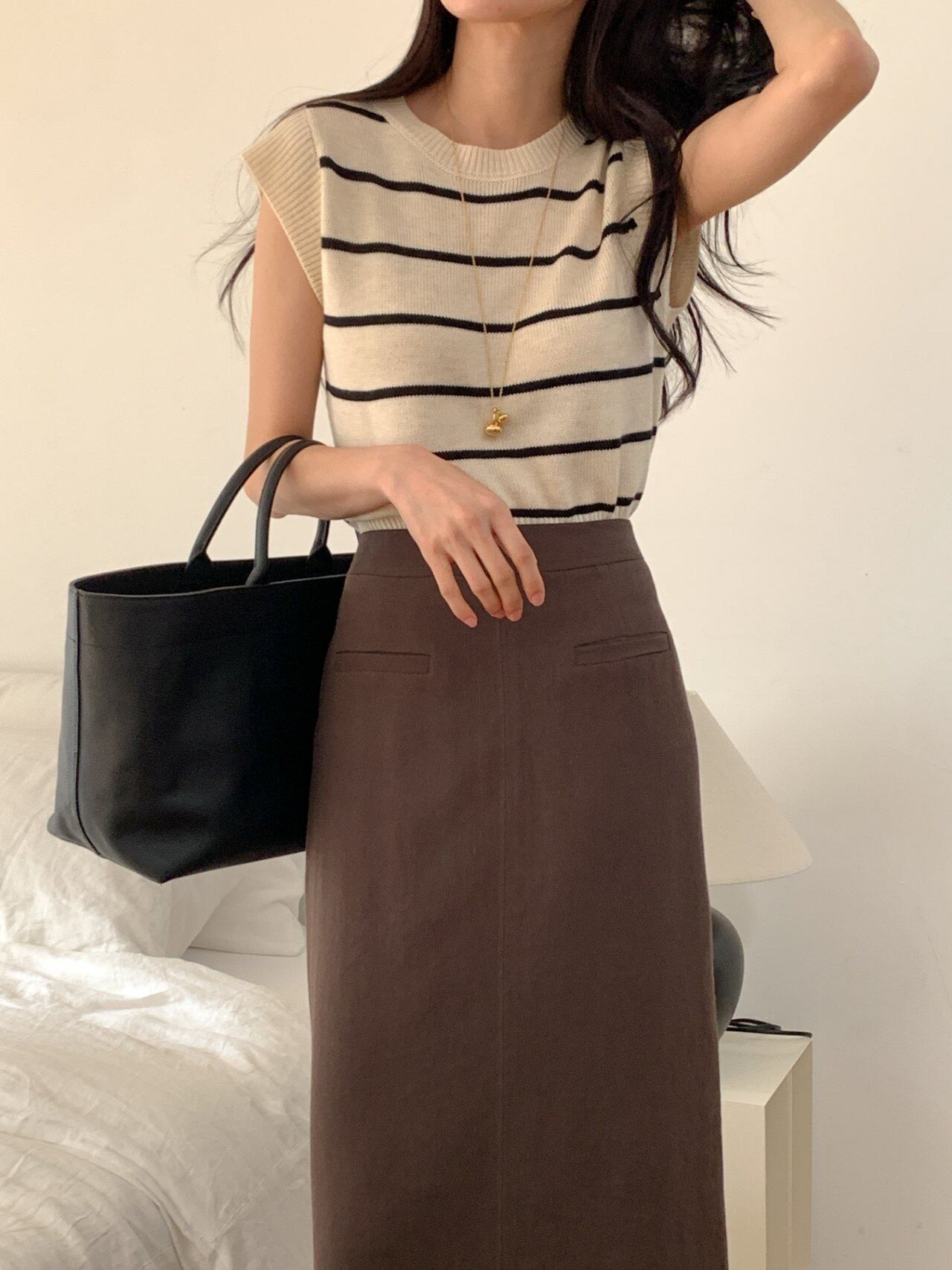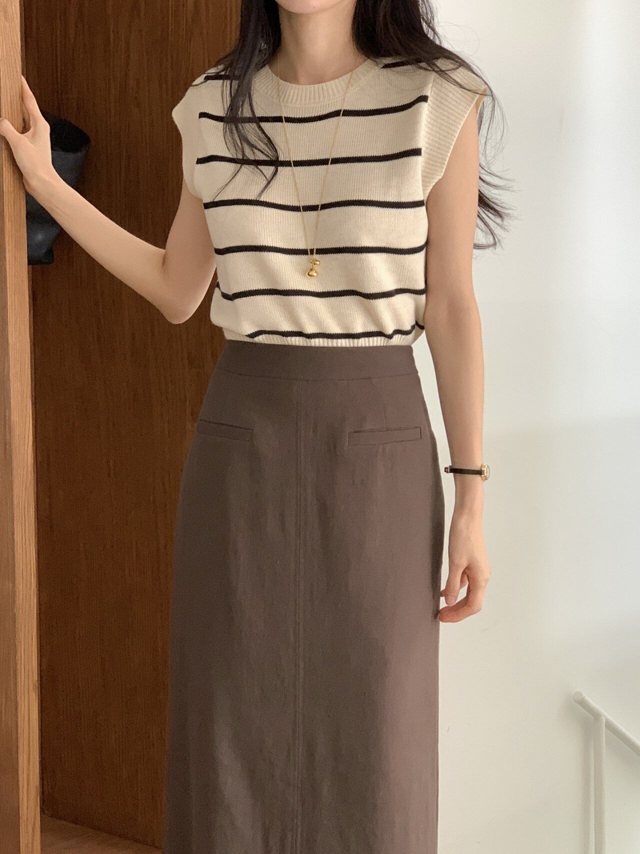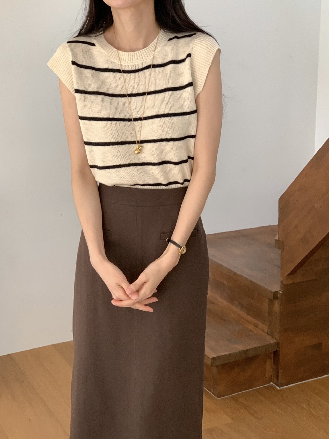 柔らかなコットン素材で作られたサマーニットは、シンプルながらもオシャレなアクセントを加えてくれます。伸縮性に優れ、少しゆとりのあるシルエットと長すぎない丈が夏のコーデにぴったりです。
